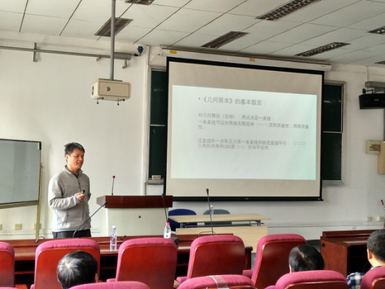 4月12日,北京大学数学科学葡京娱乐场官方网站 史宇光教授到葡京娱乐场官方网站 作了一期题为《广义相对论中的几何分析介绍》的学术讲座。史宇光教授为北京大学数学科学葡京娱乐场官方网站 副院长,国家杰出青年基金获得者。史教授简明扼要地回顾几何学发展历史,着重介绍了若干和相对论中质量相关的几何分析问题。报告脉络清楚,引人入胜,用熟知的等周不等式联系了广义相对论中几类质量的定义方法,让到场听众领略了数学研究的魅力。
