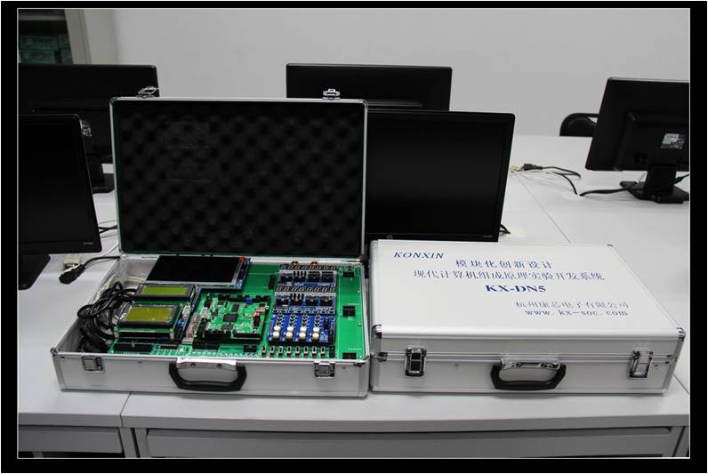 图3 插接数字TFT彩屏及4´4键盘等模块的KX-DN8 实验开发系统