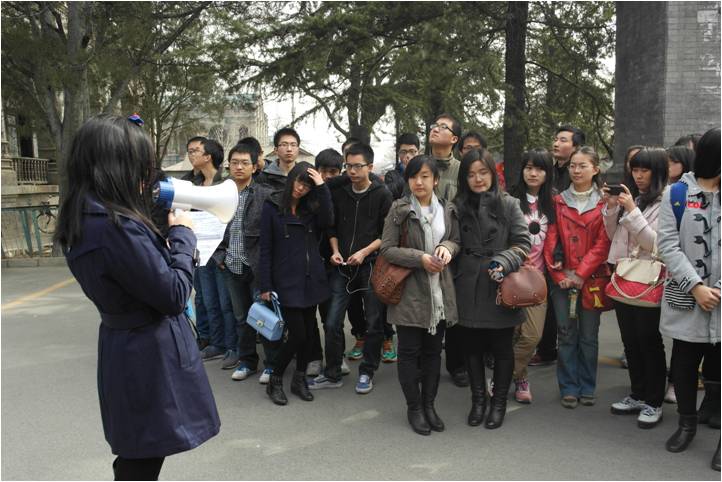进入人大旧址正门,首先看到的是哥特式钟楼,在钟楼前,担任导游的分团委组织部工作人员介绍了人大旧址的历史沿革,以及“三·一八”惨案的历史背景与事件经过。鲁迅先生著名的杂文《纪念刘和珍君》就是为纪念“三·一八”惨案而作。之后,同学们参观了主楼后面的几座建筑。主楼后的楼群,有旧式西洋风格的,也有建国后所建的老式住宅楼。古老的楼群透露出一种沧桑之感,让同学们回忆起当初这里发生过的惨案,也令大家对人大旧时的情景产生无尽的想象。参观期间,有一位居住在这片住宅区的老人为我们分享了当时人民大学成立的盛况,同学们驻足聆听。最后,同学们在钟楼前合影留念。