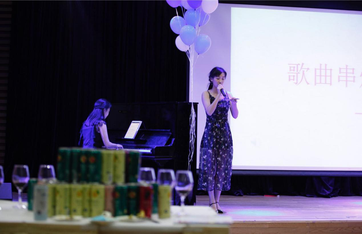歌曲联唱《遗失的美好》、《那些花儿》、《小幸运》感心动耳,表演者与观众们进行互动,气氛一时热烈非凡;钢琴伴奏《后会无期》晚会节目精彩纷呈,深深表达全场师生依依不舍情。“歌曲抢唱”、“你画我猜”等小游戏环节中同学们精彩而又机智表现使得大家笑声不断。