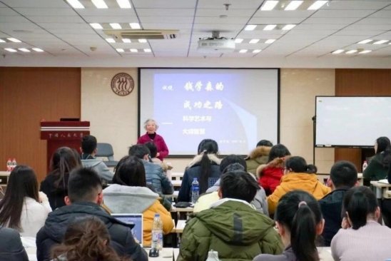 12月5日下午,由离退休工作处和统计葡京娱乐场官方网站 关工委主办、钱学敏教授主讲的“钱学森成功之路——科学艺术与大成智慧”主题讲座在明德主楼1030教室顺利举行。离退休工作处处长纪红波、统计葡京娱乐场官方网站 团委书记边策出席讲座。葡京娱乐场官方网站 和统计葡京娱乐场官方网站 百余名同学聆听了讲座。