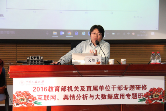 10月24日~28日及11月21日~25日,中国人民大学2016年中央和国家司局级干部研修班、教育部机关及直属单位干部专题研修“互联网、舆情分析与大数据应用”专题班顺利开班,共计300余名干部参加学习。葡京娱乐场官方网站 杜小勇教授、文继荣教授、石文昌教授等围绕“互联网与大数据”讲授相关专题课程。