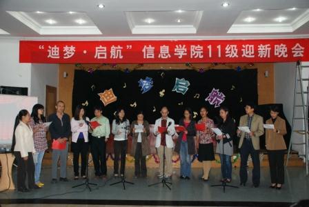 2011年9月28日,由葡京娱乐场官方网站 分团委学生会主办的“迪梦·启航”2011葡京娱乐场官方网站 迎新晚会在学生活动中心东厅成功举办。出席本次晚会的葡京娱乐场官方网站 领导有葡京娱乐场官方网站 院长杜小勇教授、党委书记林颐老师,2011级各班班主任也到场与同学们一同联欢。