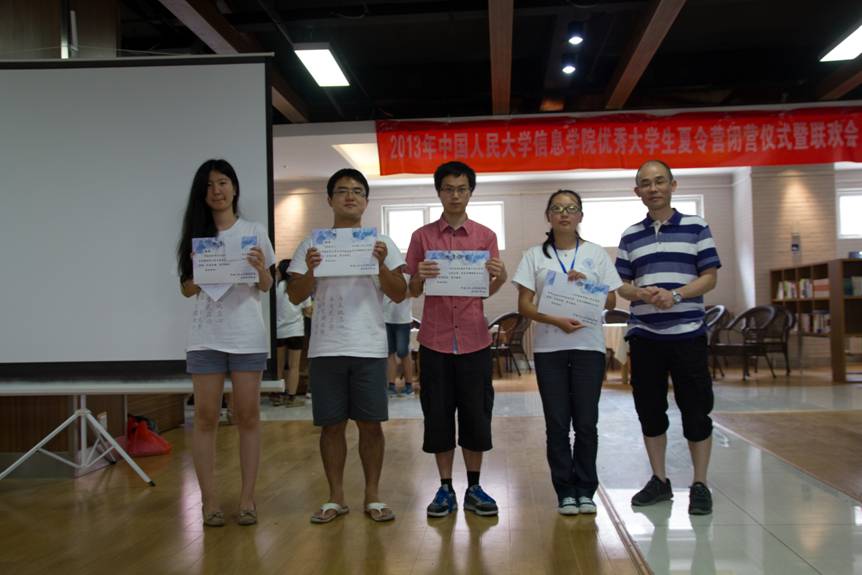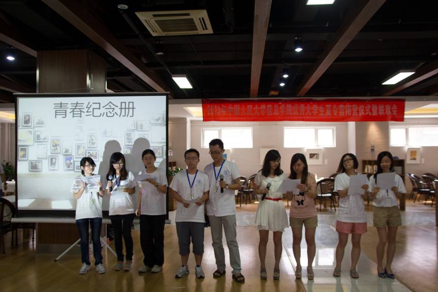 2013年7月11日上午,夏令营在公共教学一楼1102教室举行隆重的开营仪式。葡京娱乐场官方网站 院长杜小勇教授,党委书记林颐老师,副院长龙永红教授,党委副书记陈红教授,经济信息管理系主任梁循教授,计算机系主任石文昌教授,数学系主任张庆彩教授,计算机系文继荣教授等老师及全体营员出席开营仪式。