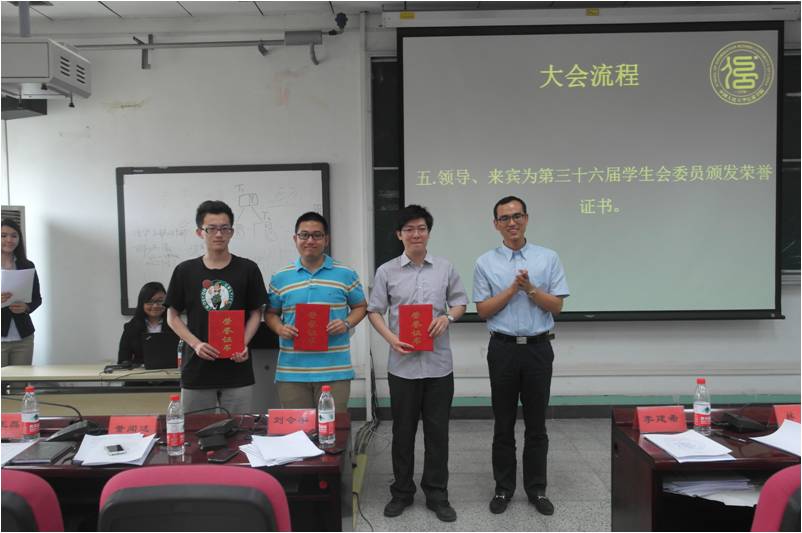 校团委副书记李建希老师为上一届学生会委员颁发荣誉证书