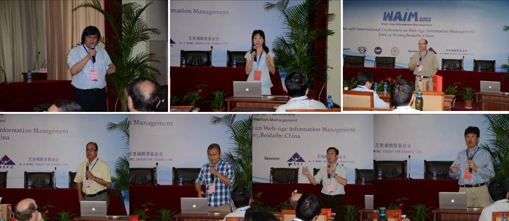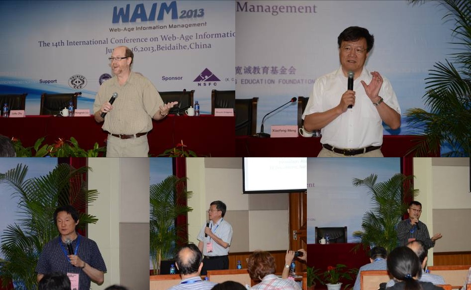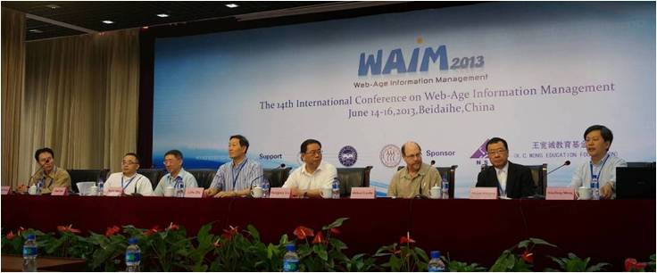 第14届网络时代信息管理国际会议(The 14th International Conference on Web-Age Information Management,WAIM 2013)于2013年6月15日在北戴河成功召开。此次会议由燕山大学和中国人民大学主办,中国人民大学孟小峰教授、美国亚利桑那州立大学Huan Liu教授以及日本筑波大学的Hiroyuki Kitagawa教授担任大会主席,来自国内外两百余人参加本次会议。