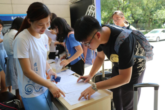 7月10日下午,全体营员在理工配楼报到,在志愿者帮助下领取物资、办理手续。