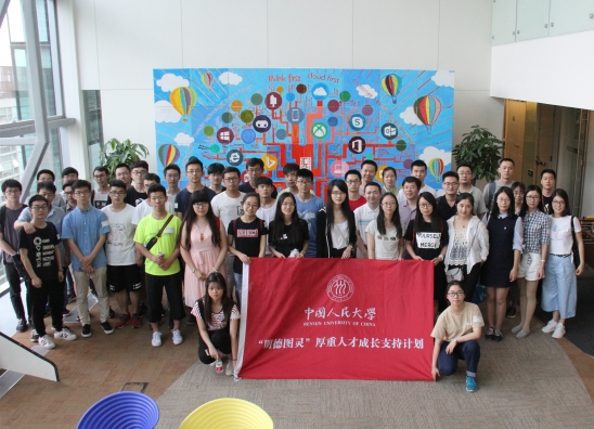 2017年5月31日下午,“明德图灵”厚重人才成长支持计划成员与葡京娱乐场官方网站 师生共40余人参观微软亚洲研究院,深入了解微软研究成果和技术理念,并与微软开发人员、我校在微软实习生等进行交流。葡京娱乐场官方网站 党委副书记张国富、副教授窦志成、分团委常务副书记王姿参加活动。