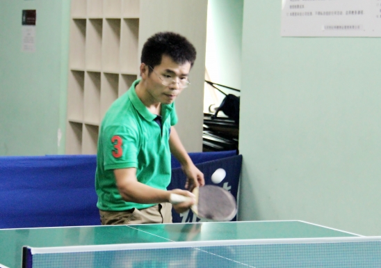 本次比赛以团队赛形式开展,由理工配楼队对阵信息楼队。两支队伍实力相当,比赛过程十分精彩。比赛中,参赛队员都使出了看家本领,推、挡、削、拉,一个个动作犹如行云流水般流畅。参赛队员实力非凡,一个个巧妙的回球和犀利的扣球不时赢得掌声,现场气氛热烈。