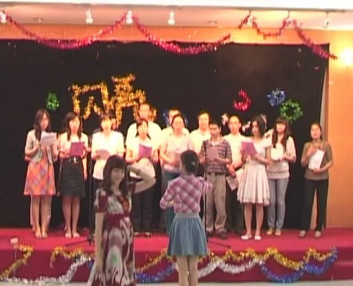 图说:2010年5月27日,“闪亮的日子”毕业晚会,教师合唱团正在演出
