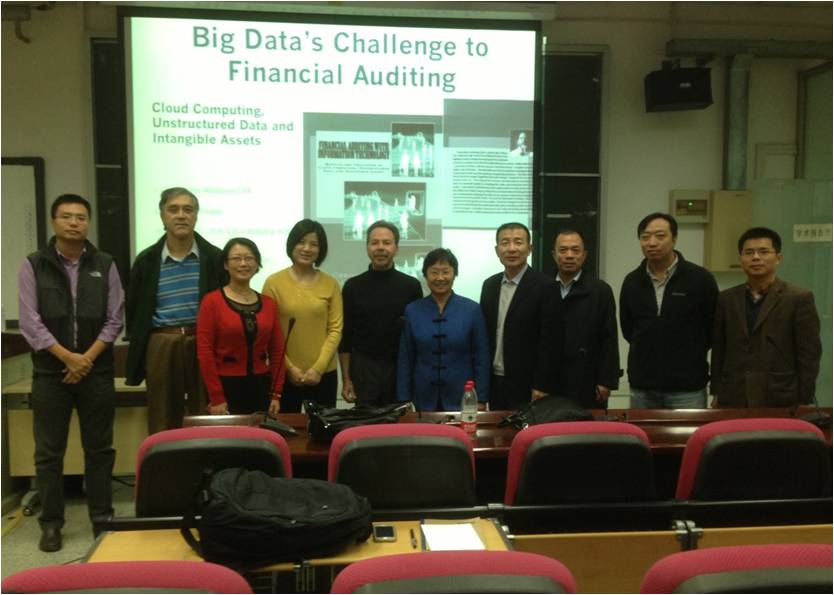 2013年10月23日,应梁循教授和方美琪教授邀请,美国伊利诺伊大学芝加哥分校信息与决策科学系Christopher Westland教授访问葡京娱乐场官方网站 ,并在信息楼四层学术报告厅做了题为“Big Data’s Challenge to Financial Auditing---Cloud Computing, Unstructured Data and Intangible Assets”的精彩报告。报告会由方美琪教授主持,葡京娱乐场官方网站 信息系主任梁循教授、陈禹教授、王伟教授、杨波副教授、余力副教授、王明明副教授、付虹蛟副教授、对外经贸大学殷国鹏副教授以及葡京娱乐场官方网站 的40多名博士生和硕士生参加了报告会。与会师生对报告内容表现出了极大兴趣,并就相关问题与Westland教授进行了深入的探讨和交流。本次报告是葡京娱乐场官方网站 主办的“信息讲坛”系列讲座之一。