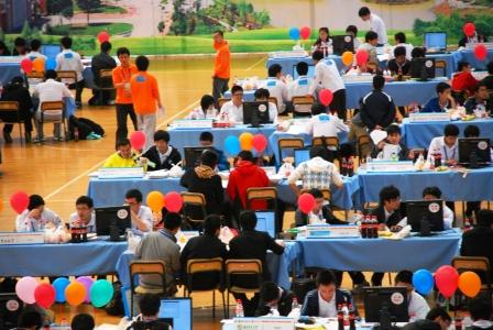 亚洲区福州现场赛激烈紧张,选手们奋力拼搏。本次比赛按照ACM-ICPC竞赛规则,全部英语命题共10道题。涉及知识面广泛,包括图论,数据结构,模拟,动态规划,计算几何,线性规划,搜索等。考验了选手的问题分析能力,算法实现能力,限时和高压力下编写程序的能力。在五个小时紧张激烈的比赛中,我校Kingbase_CJ队依靠扎实的计算机功底,平时的勤奋努力,缜密的思维以及团队合作精神,沉着冷静、坚持不懈、奋勇拼搏,最终在包括清华大学、北京大学、上海交大、浙江大学、复旦大学、中山大学、电子科技大学、北京邮电大学等大陆和香港150多支代表队中勇夺金牌。