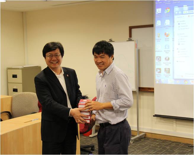 图说:杜小勇院长与黄铭钧院长互赠纪念品