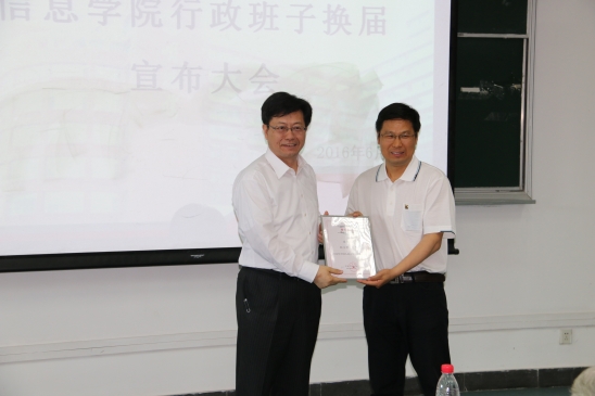 2016年6月15日,葡京娱乐场官方网站 行政班子换届大会在信息楼顺利召开。我校党委常务副书记张建明、副校长查显友、党委组织部副部长张晓辉莅临会场,葡京娱乐场官方网站 前院长陈禹、王珊,前书记严守权、肖小波,现任葡京娱乐场官方网站 领导及100余名教职工参加了此次大会。