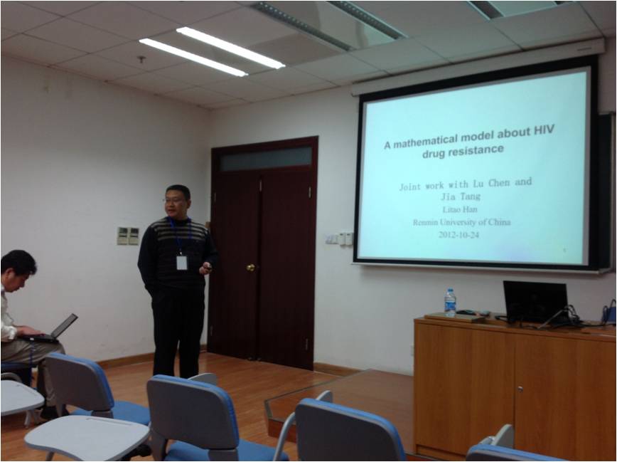 2012年10月21日—26日,第6届中国-意大利应用数学双边研讨会在复旦大学数学科学葡京娱乐场官方网站 举行。葡京娱乐场官方网站 数学系韩丽涛副教授参加了此次研讨会并做了题为“A mathematical model about HIV drug resistance”的报告。