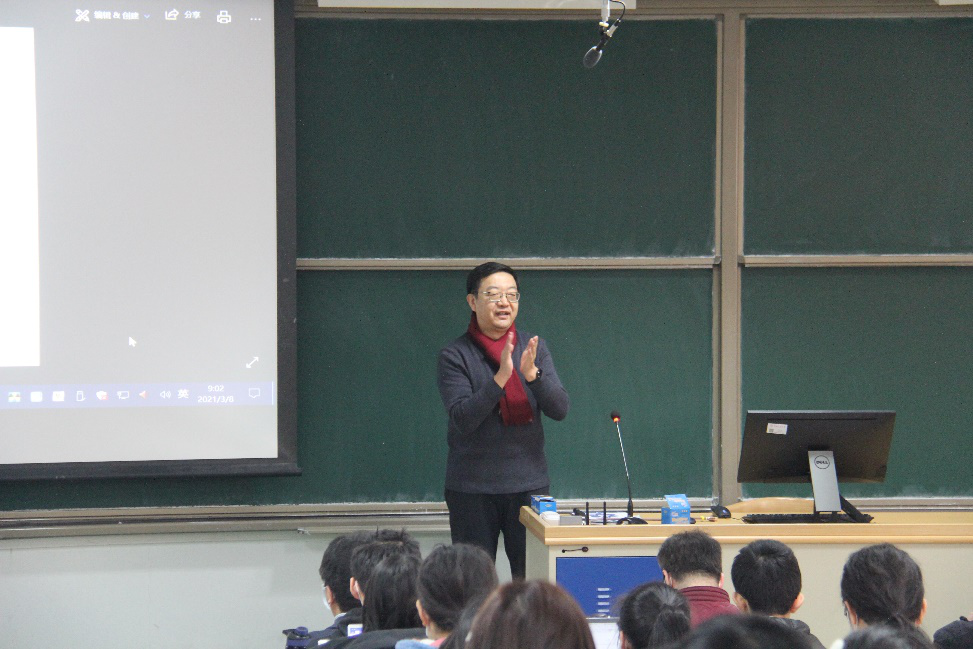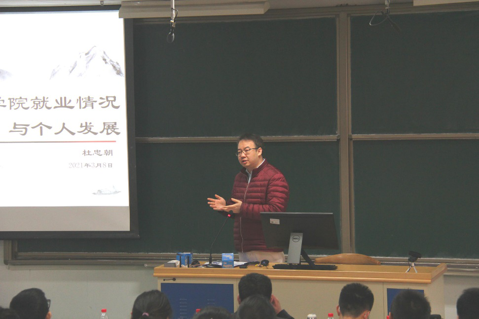 葡京娱乐场官方网站 党委副书记杜忠朝从学生比较关心的就业、保研方面向同学们做了介绍。杜忠朝老师向同学们展示了近几年葡京娱乐场官方网站 的保研和就业方向数据,让同学们不用过于担心毕业后的去向问题。同时,杜忠朝老师还向同学们介绍了“本科生进实验室”活动,鼓励同学们在本科尽早开始做科研。