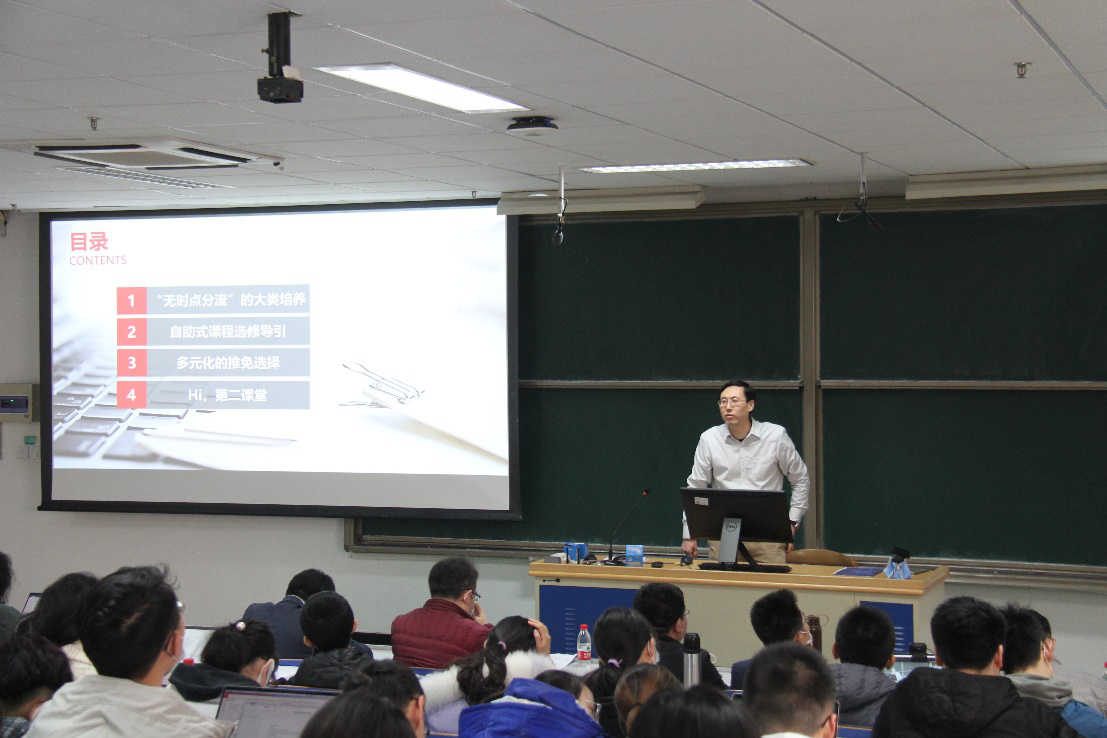葡京娱乐场官方网站 副院长张孝就葡京娱乐场官方网站 的人才培养方面向同学们进行了宣讲。张孝老师通过“无时点分流”的大类培养,自助式课程选修,多元化的推免选择,以及第二课堂——丰富多彩的竞赛活动四个方面全方位的向同学们介绍了葡京娱乐场官方网站 人才培养的多元性和全面性。