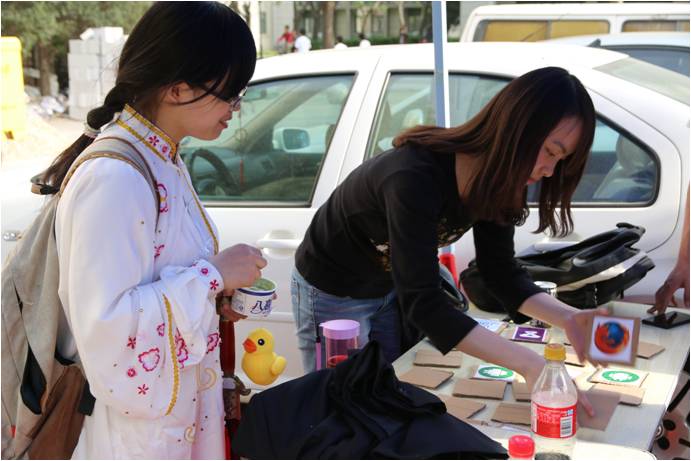 在参观实验室的同时,学生会工作人员还在理工配楼门前进行了计算机系特色展示活动,活动方准备了有趣的游戏和精美的礼品吸引同学们参加,并在参加过程中向其展示计算机系特色。游戏包括信息来找茬、信息翻翻翻和信息答答答,生动有趣的游戏吸引了众多同学前来参观和试玩。