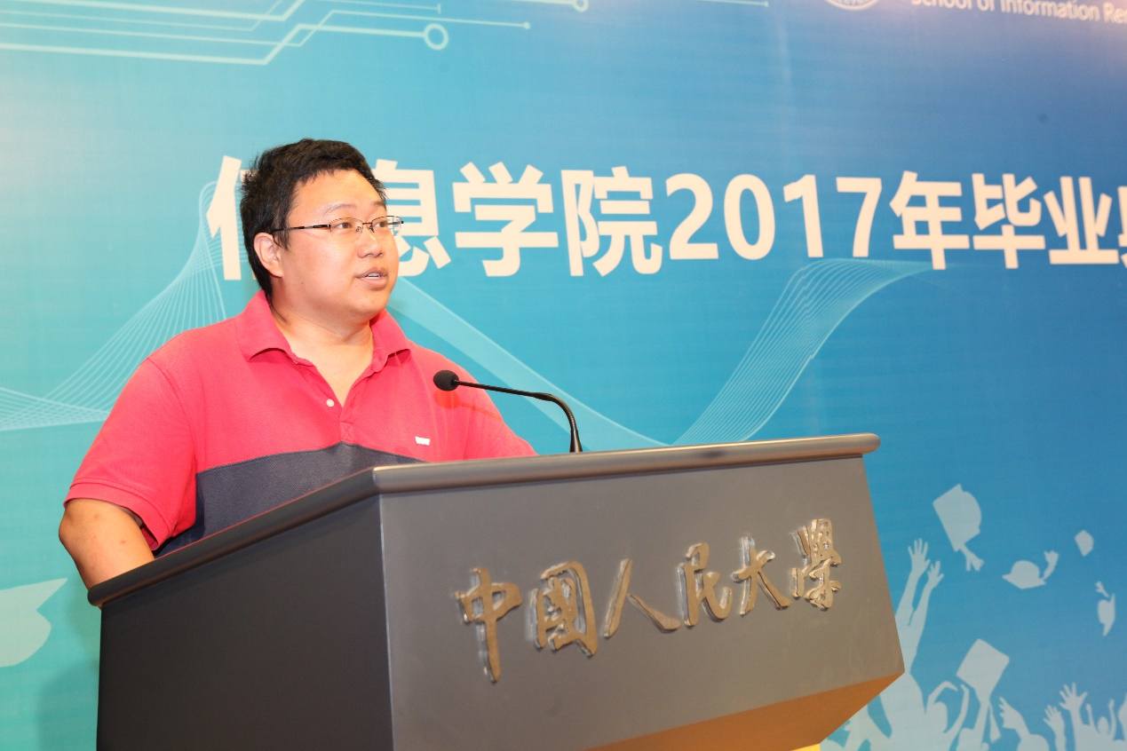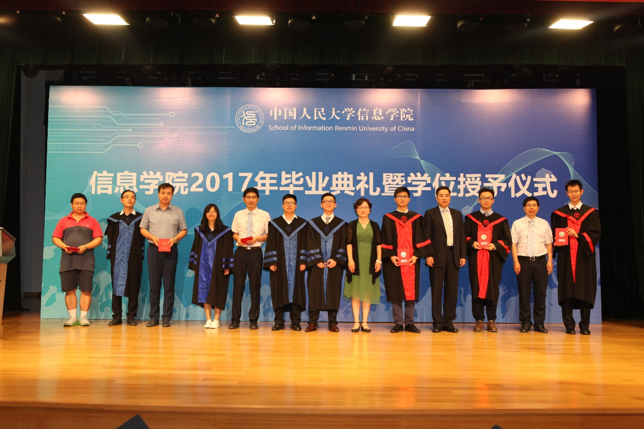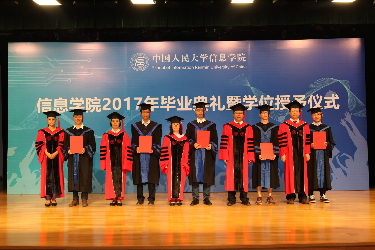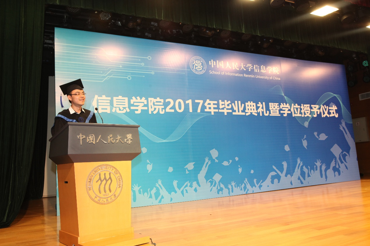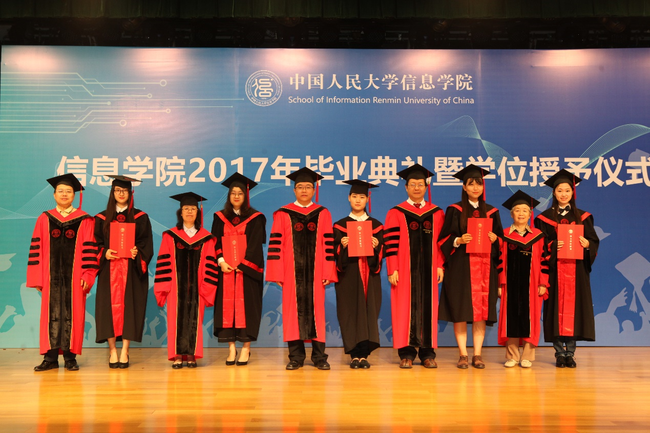 6月21日,葡京娱乐场官方网站 2017年毕业典礼暨学位授予仪式在八百人大教室隆重举行。中国人民大学党委副书记郑水泉教授、葡京娱乐场官方网站 前院长王珊教授、1982级本科生、InfoSys公司大中华区CEO刘宏、1983级本科生、新晨科技股份有限公司副总裁兼财务总监余克俭、1993级本科生、浪潮电子信息产业股份有限公司总裁助理张东、2003级本科生、国海证券董事总经理于超,以及学校理工学位分会葡京娱乐场官方网站 委员、中层干部、班主任代表出席了本次仪式,葡京娱乐场官方网站 192名学士学位获得者、157名硕士学位获得者及部分毕业生家长参加了本次仪式。