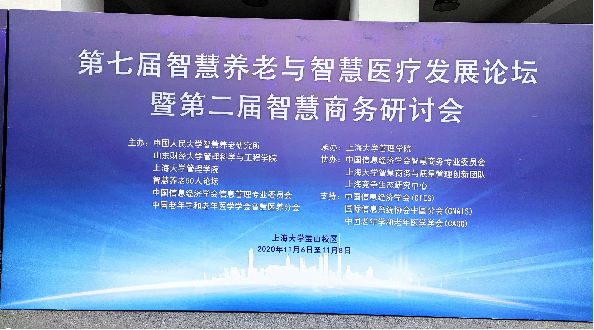 2020年11月6日至11月8日,第七届智慧养老与智慧医疗发展论坛暨第二届智慧商务研讨会在上海大学成功举办。本次论坛由中国人民大学智慧养老研究所等6家单位联合主办,由上海大学管理葡京娱乐场官方网站 承办。本次论坛吸引了近70人线下参与,吸引了150余人线上参与,与会人员多为来自于全国各地学界、政界、产业界的研究者们。葡京娱乐场官方网站 副院长、中国人民大学智慧养老研究所所长左美云教授受邀出席并做报告,葡京娱乐场官方网站 程絮森教授受邀主持青年学者论坛。