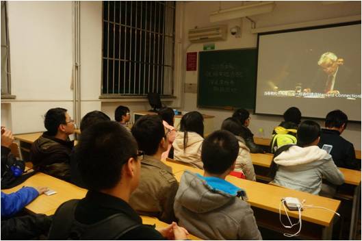 图说:2013级六班同学在观看电影《社交网络》