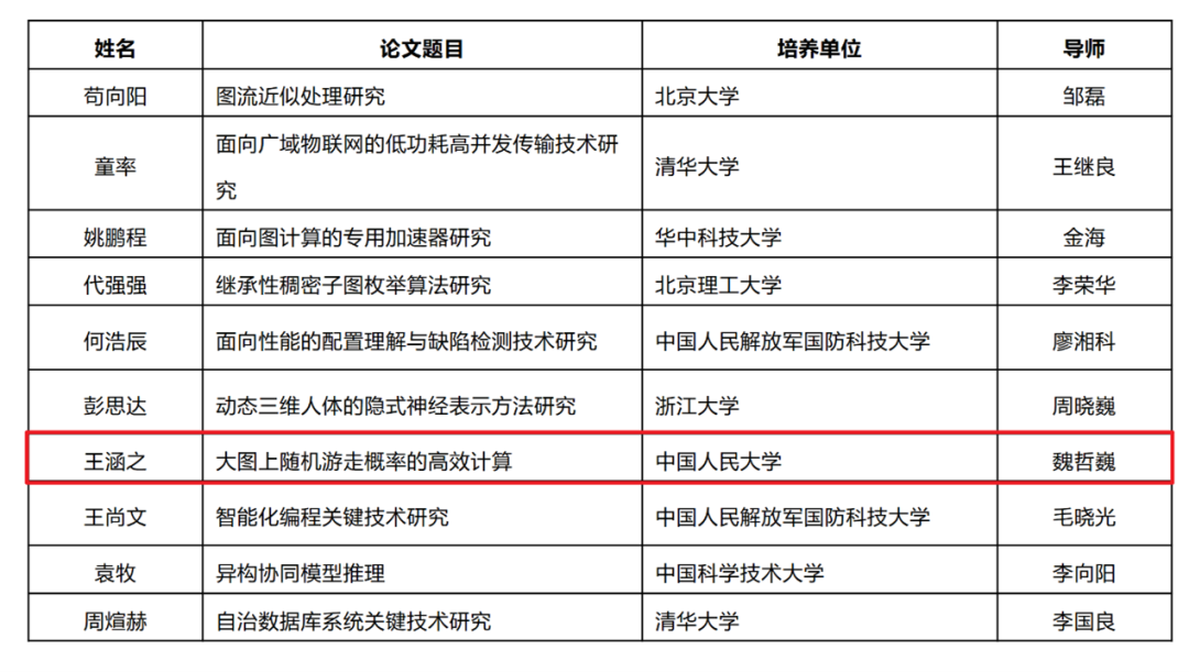 喜报丨葡京娱乐场官方网站 毕业生王涵之入选2024年“CCF博士学位论文激励计划”