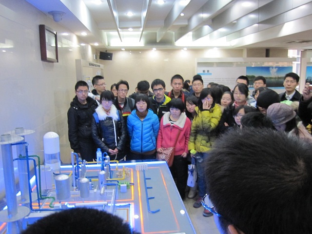 在到达参观地点后,电厂工程师代表首先对人大学生的到来表示欢迎,并简要地介绍了电厂的概况。同时同学们通过视频讲解,了解了运用于发电机组工作的各项新工艺,新技术。在参观活动中,杨小平老师指出了计算机控制系统在过程控制中的巨大作用,同时鼓励同学们多多走出校门,在社会生活的各个角落去发现计算机技术和数学知识在各行各业的运用,为自己的未来设立好目标。梁循老师勉励同学们:“外出参观不仅仅是走马观花地晃一圈,而是参观我们的未来,是为了我们寻找兴趣,选择未来发展方向而来的。”随后,由来自华能电厂的工程师为同学们就发电厂特有的脱碳制取二氧化碳的设备与工艺做了详细的讲解。