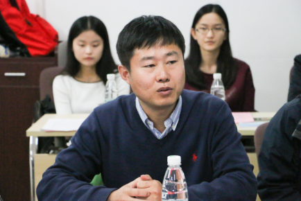 导师代表窦志成副教授发言,欢迎各位同学加入“明德图灵”项目,并解释了本项目的设立初衷及导师团队规划的成员培养方式。他表示,希望通过该项目,专项培养一批优秀的计算机人才,开拓项目成员的国际视野,引导同学们接触国际前沿领域,与国际领先水平接轨。