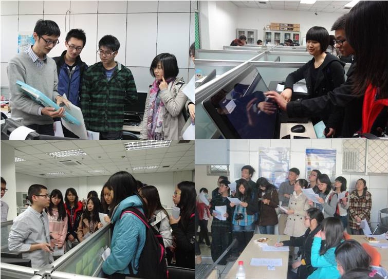 讲座后,同学们在工作人员的带领下分别参观了信息楼以及理工配楼的各个实验室,亲身感受实验室的科研氛围。系统与信息安全研究实验室的师兄为到场同学们演示了一款在Android平台上动态监测应用程序是否泄漏隐私的系统;网络与移动数据管理实验室的师兄介绍了获得中国计算机学会“王选奖”的纯XML数据库系统展示平台;多媒体计算实验室的音乐指纹识别、图像分析等内容也引起了不少同学的兴趣……实验室成员热情地展示研究项目,耐心地解答同学们疑问,诚挚的邀请同学们加入实验室。“实验室并不像我原本想象中的那么死板沉闷,就像是一个个大家庭。”在参观完无线传感器网络与优化实验室后,一位同学这样感叹道。