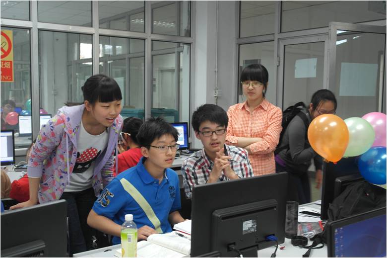 下午2:00,比赛正式开始。本次比赛时间为3小时,共11道题目,并根据题目难度及参赛学生的水平设置了普及组和提高组。比赛采用网上实时提交制,由参赛系统自动评分,保证了比赛的高效性和公平性。比赛开始后,各支队伍迅速进入状态,同学们时而苦思冥想,时而在组内积极讨论,场面十分紧张。最终,经过三小时的角逐,比赛一二三等奖得主全部产生。葡京娱乐场官方网站 2013级本科生丁明宇、霍宇琦、熊睿三位同学获得普及组一等奖,葡京娱乐场官方网站 2012级的王瀚达同学获提高组一等奖。