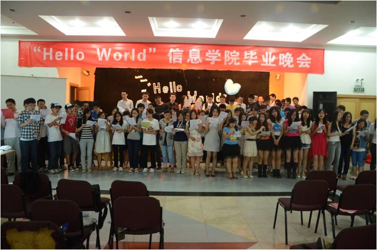 2012年6月3日晚上18:00,由葡京娱乐场官方网站 分团委学生会和2008级毕业生联合举办的 “Hello World” 葡京娱乐场官方网站 毕业晚会在学生活动中心东厅拉开帷幕。葡京娱乐场官方网站 院长杜小勇教授、院党委书记林颐老师、副院长龙永红教授、院党委副书记王甫银老师、计算机系系主任石文昌教授、经济信息管理系系主任梁循教授,以及2008级各班班主任等出席了本场晚会。