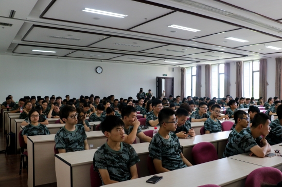王姿、张立龙两位带队老师先后发言。王姿老师表示,表示自己是同学们坚实的后勤保障,同行的友好伙伴。为了减少同学们由于不熟悉军训环境而可能引起的生活上的麻烦,王姿老师详细叙述了军营的饮食条件、住宿条件、行车情况等,并贴心地提醒大家注意保暖,就“衣食住行”进行方方面面的指导。张立龙老师向同学们简要介绍了本次军训的各项行程安排,提醒同学们为即将到来的训练做好准备。