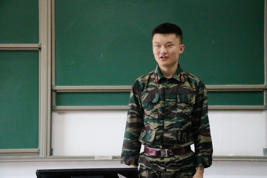2016级本科曹汉同学作为学生代表最后发言。他抛出两个问题:为什么军训和军训带来什么,从根源处挖掘出军训对同学们不可或缺的意义。大学军训不同于初高中,更严苛也更有价值,它有利于增强当代大学生的集体意识,有利于改变安逸生活带给学生们的坏习惯,端正同学们的学习态度,锻炼同学们的意志。同时,军训是战争的剪影,使同学们回首过去,审视现在,面向未来。