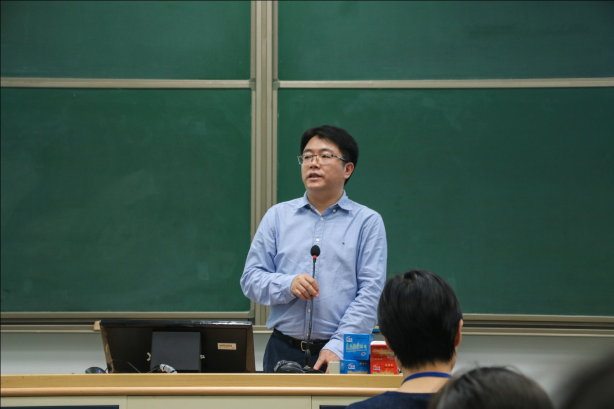 党委副书记张国富老师介绍新生入学的各项事宜与注意事项,提醒新生在接下来一周内应该完成的几项事宜与需要注意的安全问题。
