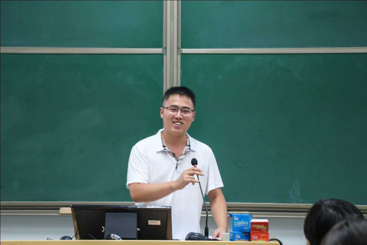 2018级辅导员代表何高乐向全体新生介绍大学的学习与生活,加深了同学们对大学的了解。同时从学习经历、学生工作、课余活动等方面分享了自己和本科优秀同学的大学经历,为2018级新生树立了一个好榜样。