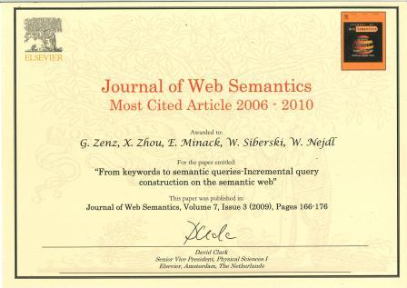 关于该论文的信息如下: Gideon Zenz, Xuan Zhou, Enrico Minack, Wolf Siberski, "From Keywords to Semantic Queries: Incremental Query Construction on the Semantic Web", in the Journal of Web Semantics (JWS), Volume 7, Issue 3, Page 166-176, 2009。
