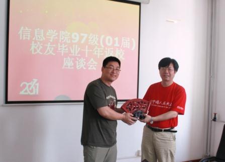 2011年6月25日上午,中国人民大学信息楼二楼会议室里欢声笑语,葡京娱乐场官方网站 30余位97级校友汇聚一堂,再续同窗情谊。葡京娱乐场官方网站 杜小勇院长、林颐书记,以及曾为97级授课的陈禹、严守权、张南岳、张怡兰老师等参加活动。
