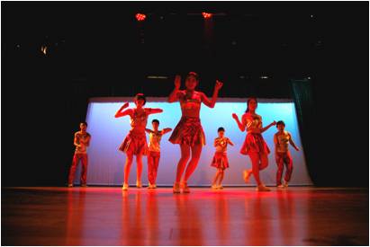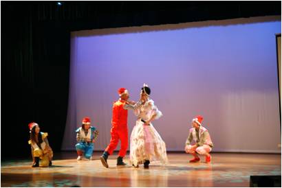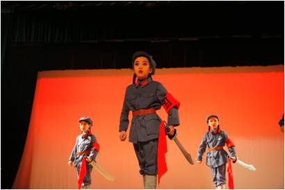 图说:(左上 合唱《海上花》《新年快乐》 右上 戏剧 《红色娘子军》