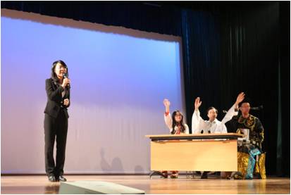 图说:开场舞《舞动青春》(左),舞台剧《穿越招聘会——宋朝专场》(右)