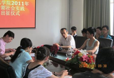 2011年7月1日,葡京娱乐场官方网站 2011年暑期社会实践出征仪式在信息楼二楼会议室举行。党委书记林颐老师、暑期实践带队教师张立峰老师、许伟老师、团委书记张国富老师等出席本次仪式。