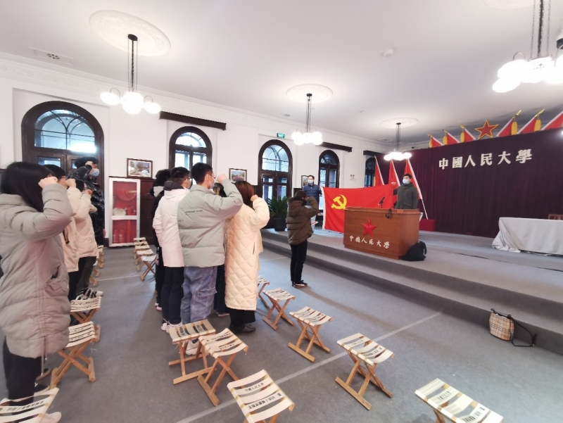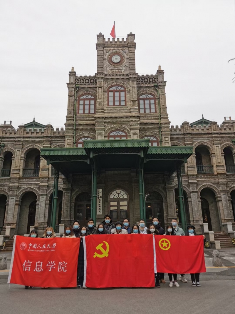 为贯彻《中国共产党支部工作条例(试行)》有关精神,落实我校“四史”教育有关要求,帮助党支部、团支部成员从历史与现实相贯通,理论与实践相结合的宽广视角认识我校作为中国共产党亲手创办的第一所新生正规大学的光荣历史,提升对学校的荣誉感和归属感,葡京娱乐场官方网站 2020级电子信息硕士党支部、团支部于2020年12月17日前往中国人民大学老校区(铁狮子胡同)开展主题党日、主题团日活动。全体党员、入党积极分子及团员代表参与活动。