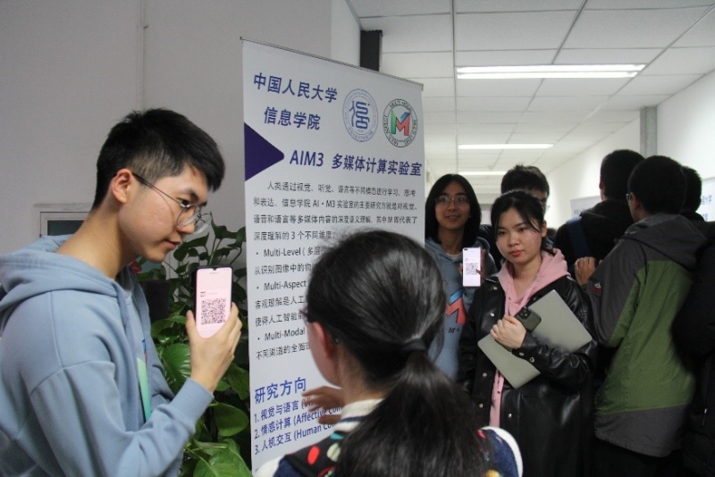 之后,同学们离开报告厅,在走廊上与实验室的师兄师姐进行了近距离的交谈,走廊上提前已经布置好了各实验室的介绍材料。同学们在感兴趣的实验室海报前驻足观看,并就感兴趣的话题同师兄师姐进行了交流。实验室负责同学也和有意向加入的同学互换了微信。至此,葡京娱乐场官方网站 “本科生进实验室”活动圆满落幕。
