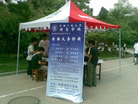 一、为了集中服务同学,提高服务效率,计算机协会针对以笔记本作为主要电脑的学生群体开展了校园义诊活动,该活动每周三中午十一点准时在理工配楼门前空地举办。本学年共成功解决各类电脑问题75例(由于前来维修的同学太多,所以仍有一部分没有记录在册),前来咨询者更是不计其数,且给予了此次活动很高的评价,在活动期间,多次有青年人大,信息月刊,新闻葡京娱乐场官方网站 等多个媒体部门来采访计算机协会的技术人员,这充分体现了此次活动在广大学生中带来的影响力之巨大。义诊维修服务台前人来人往,形成了一道美丽的风景线。