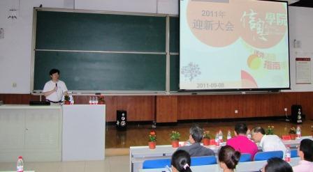 9月9日下午16点,2011年葡京娱乐场官方网站 本科生迎新大会在公教一楼召开。葡京娱乐场官方网站 党委书记林颐老师,院长杜小勇教授,经济信息管理系主任杨小平教授,副院长龙永红教授,分团委书记张国富老师,2011级班主任、辅导员及2011级新生和家长参加了此次大会。