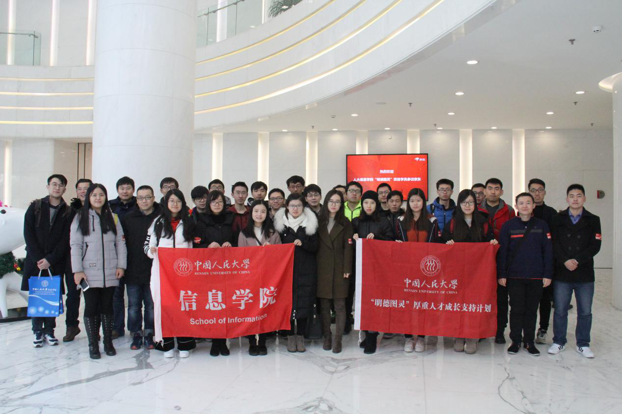 2017年12月27日,葡京娱乐场官方网站 研究生、“明德图灵”厚重人才成长支持计划学员一行前往京东商城亦庄总部参观,与京东事业部产品经理、技术总监和人力资源负责人互动交流。本次活动由葡京娱乐场官方网站 党委副书记张国富老师、“明德图灵”项目导师窦志成副教授、战疆副教授和胡长英老师带队前往。