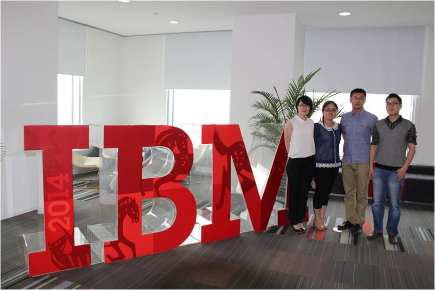 2014年6月24日下午2点,IBM中国系统与科技研发中心——PKU/RUC/BUPT/BJUT 2013-2014年度学生创新实验室项目总结大会在IBM大中华区总部顺利举行。中国人民大学、北京大学、北京邮电大学和北京工业大学四所高校参与项目的师生积极参加了总结大会。IBM AI主席刘慎锋、IBM中国研发中心王艳、IBM中国系统与科技研发中心王晓朋以及各项目经理等IBM相关人员出席了此次总结大会。葡京娱乐场官方网站 参加该项目的4名2013级软件工程硕士生高铭、胡洋、王冬雪和张希腾,以及教务科刘滢老师代表葡京娱乐场官方网站 参加了此次总结大会。