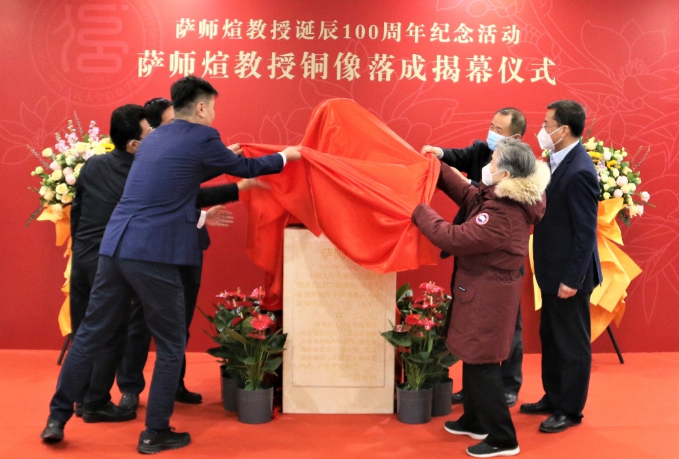萨师煊先生纪念铜像由北京人大金仓捐赠。人大金仓公司总裁杜胜回顾了人大金仓公司的创立和发展历史,表达了人大金仓对萨师煊教授的感恩与敬意,并将传承萨师煊教授的高贵品质与初心使命。