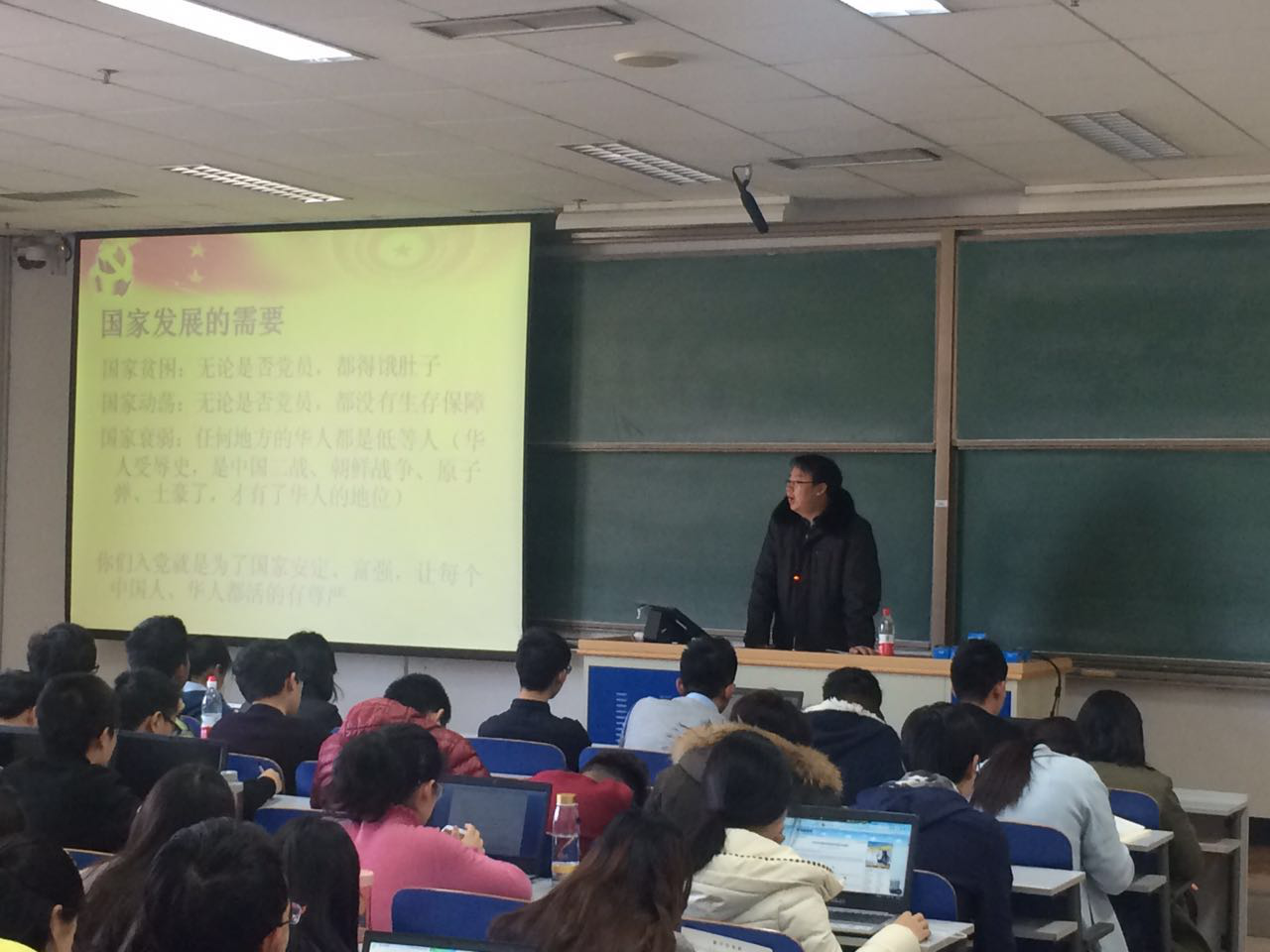 杜老师描述了国外动乱的国家的人民所遭受的苦难,强调了我们国家、我们党为我们创建了一个安定、平稳的发展空间。而这一切,都是党带领人民创造的。那么多共产党人,他们收入不一定高,地位也不一定突出,他们所做的更多的是出于自己的责任和信仰,是国家发展的需要,是个人内心的责任,成为了这批人的入党动机,为自己,也为后代创造了现在的一切。