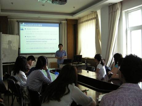 (图说:龙永红副院长向同学们介绍概率统计方向团队情况)
