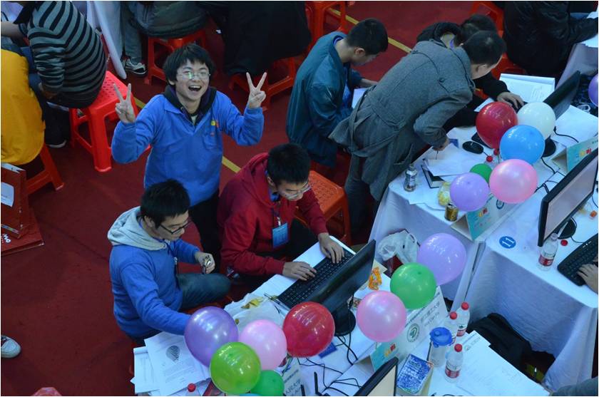 11月16日至17日,第38届ACM-ICPC国际大学生程序设计竞赛亚洲区长沙赛区比赛在湖南大学举行,葡京娱乐场官方网站 2011级学生苏蕉、汪道鹏和2012级学生王瀚达组成的中国人民大学ACM队Kingbase_Acme队夺得金牌,将于2014年6月参加世界总决赛。 本次比赛有来自清华大学、北京大学、上海交通大学、复旦大学、北京理工大学、北京邮电大学、北京航空航天大学、中山大学等190所高校的队伍参赛,人民大学代表队在激烈的竞争中稳定发挥,继长沙邀请赛夺金后再获一枚金牌,并如愿拿到了2014年6月将于俄罗斯叶卡捷琳堡举行的ACM-ICPC world final(世界总决赛)的入场券。这是人民大学ACM队连续三年获得亚洲区金牌。